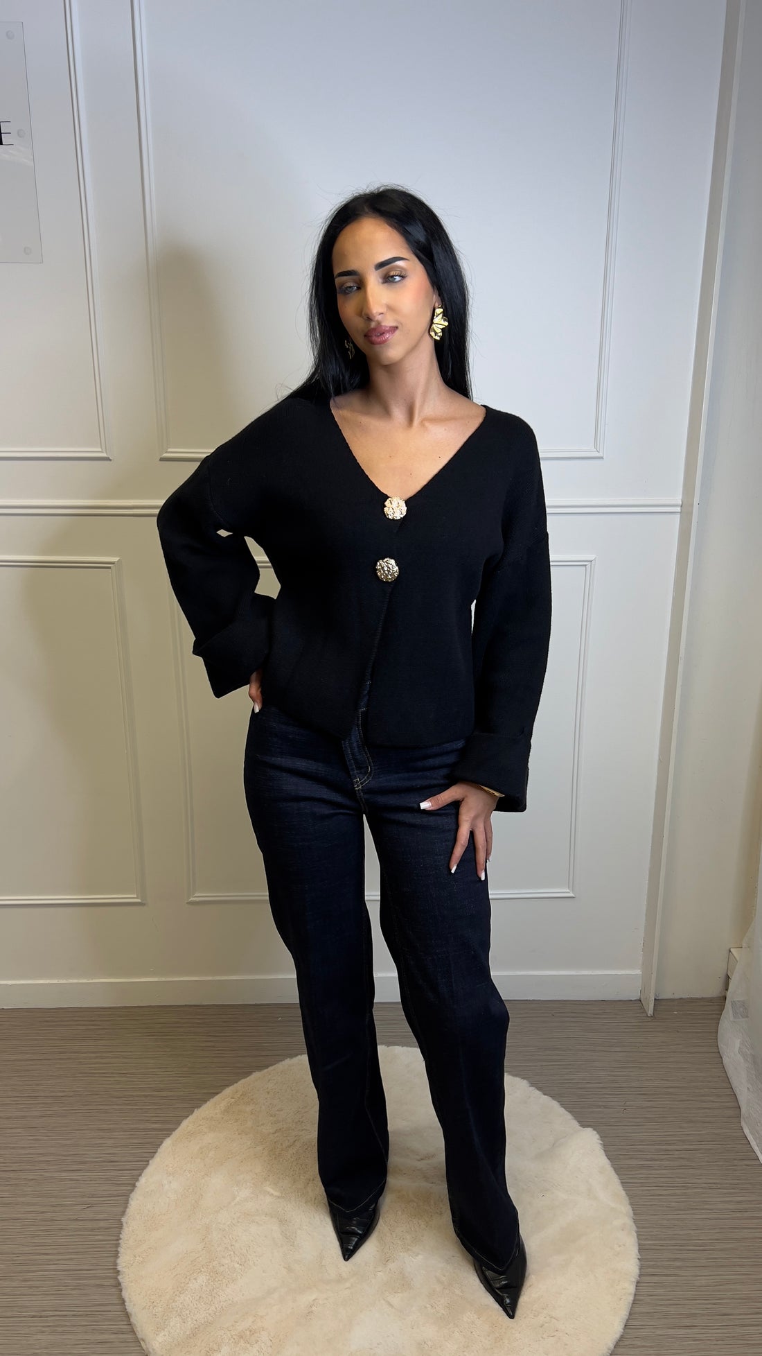 Gilet en maille cintré bouton bijoux