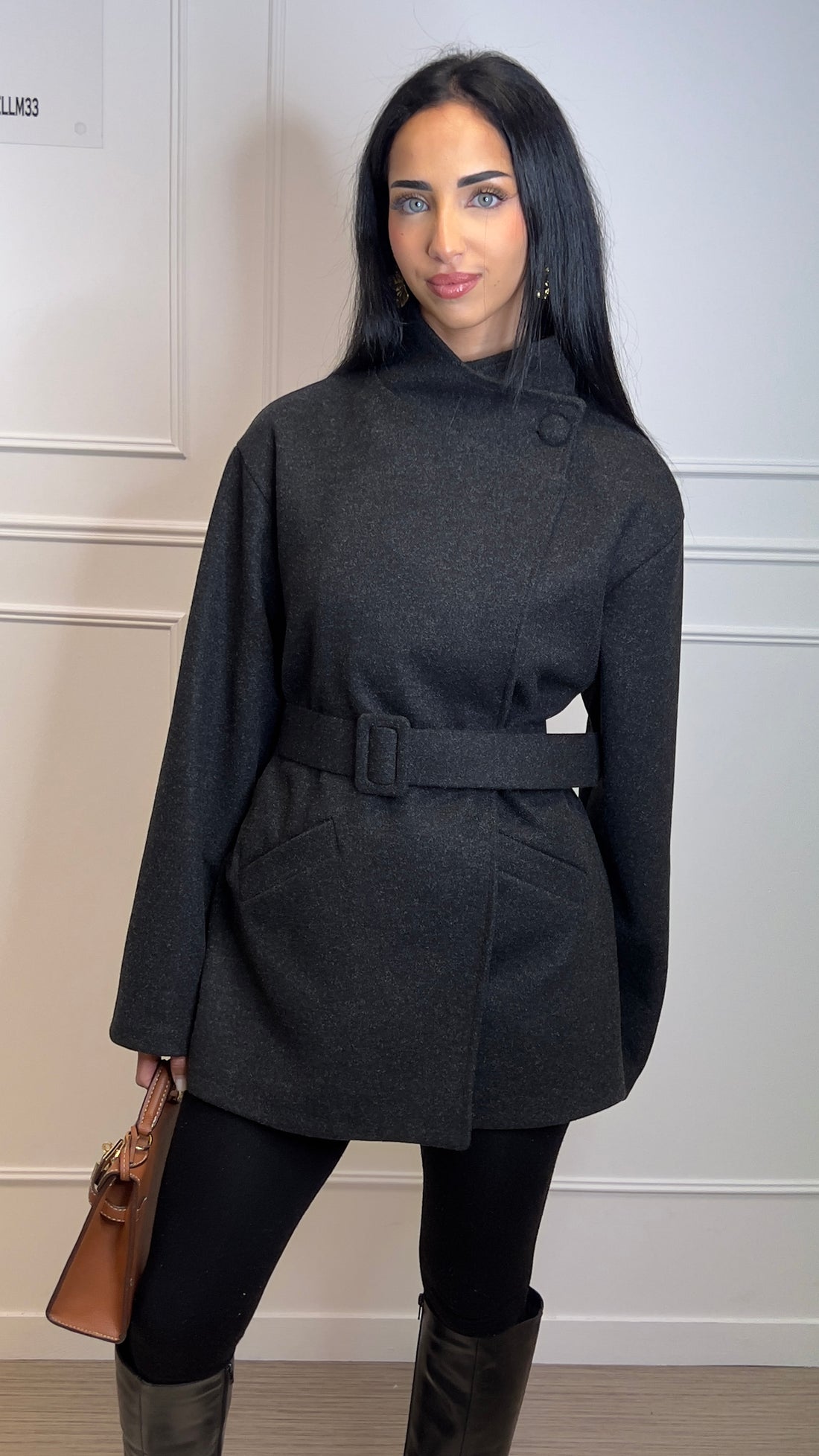 Veste Noir Col Montant avec Ceinture Tailleur - Élégance Femme