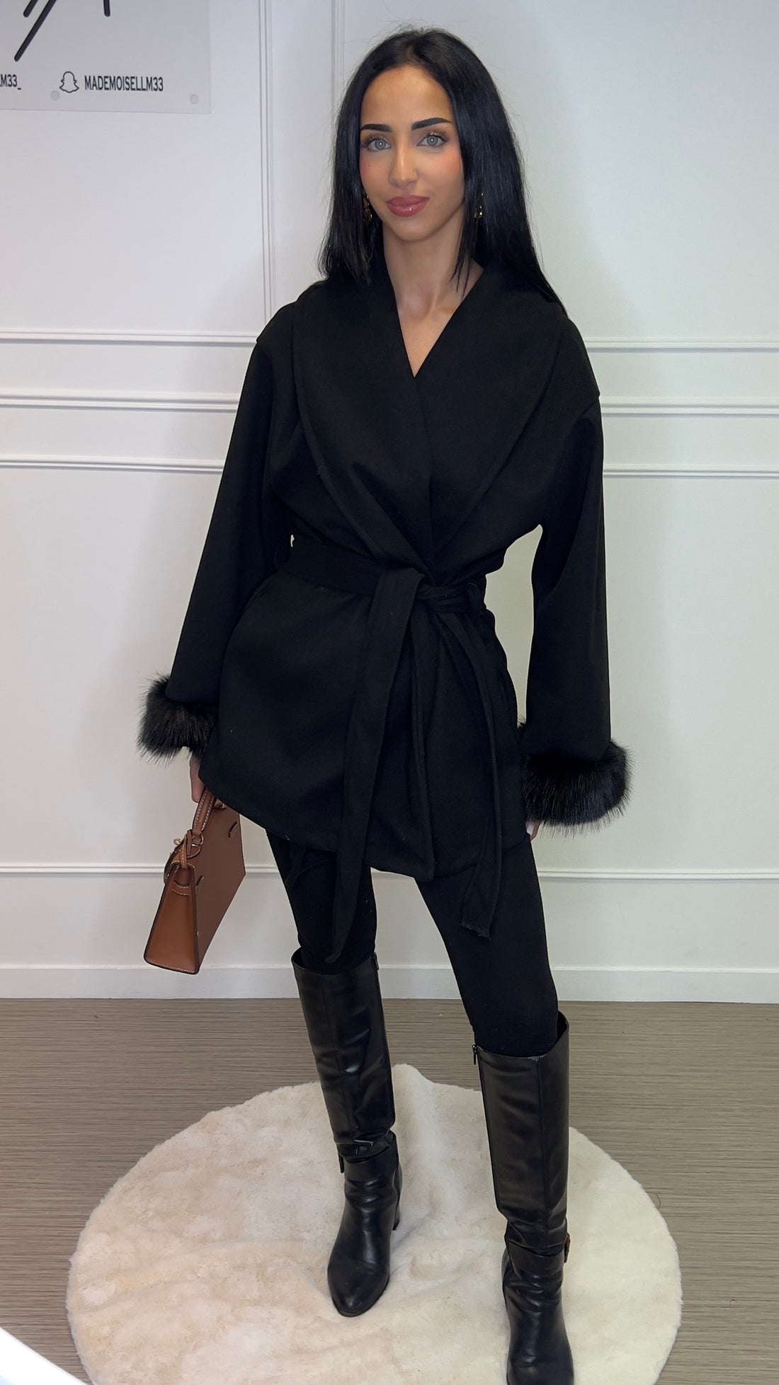 Veste marron cache cœur Noir à fourrure sur les manches
