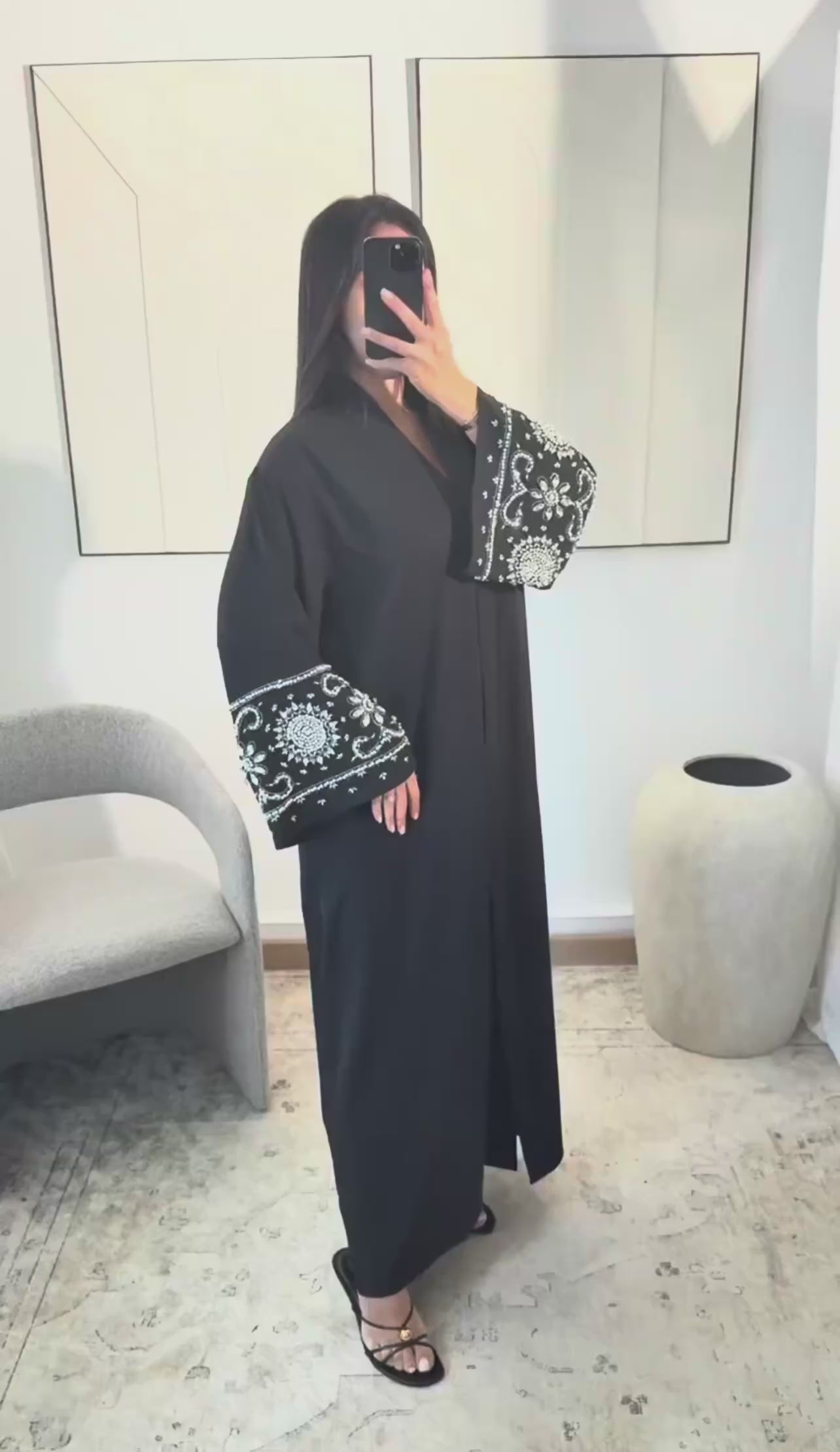 Abaya Dubaï noire strass et perles manches – Pressions et coupe fluide