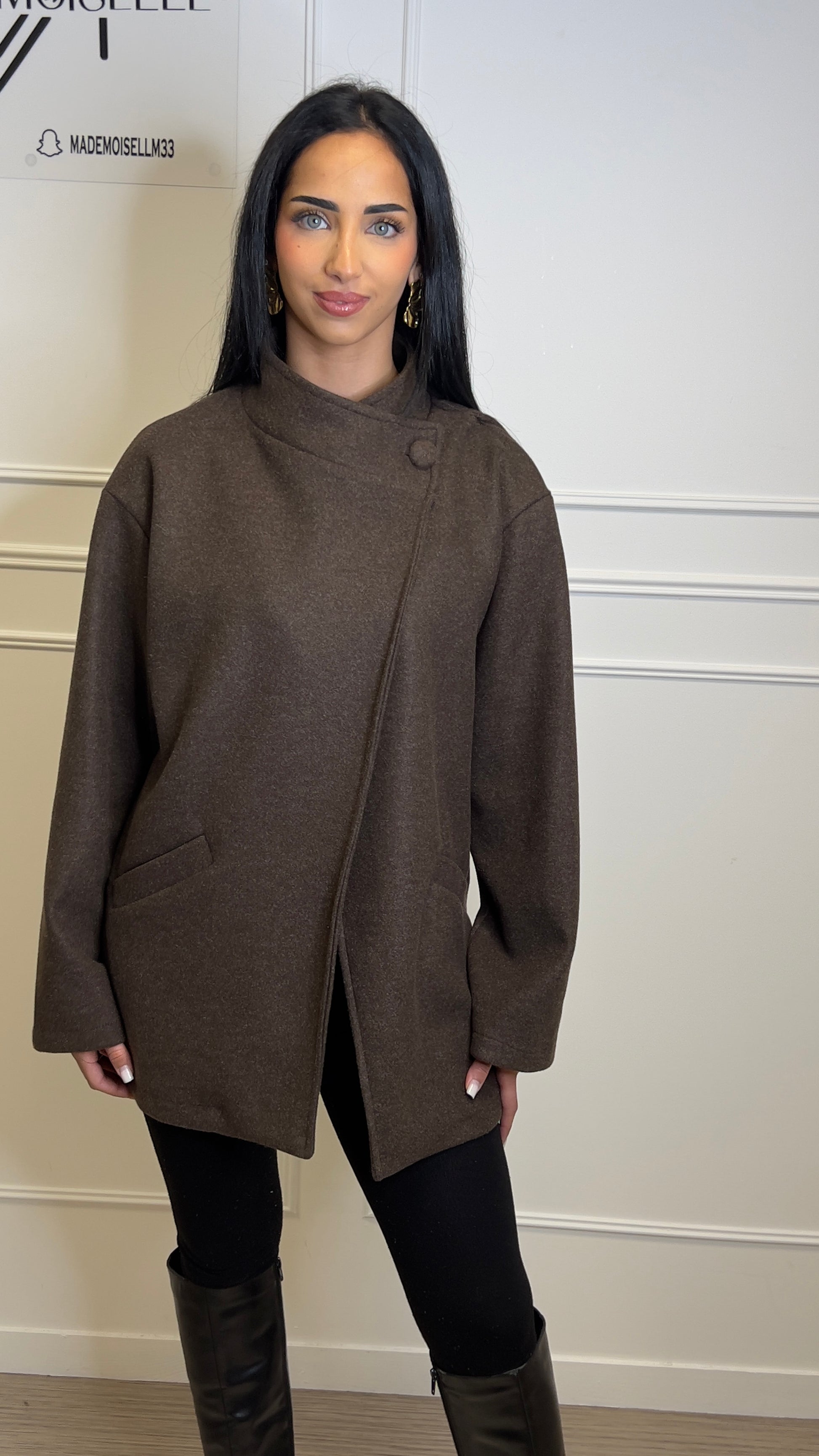 Veste Marron Col Montant avec Ceinture Ă la Taille